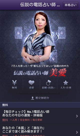美愛先生が大人気スマートフォン向けアプリ「LINE(ライン)」内の「LINE占い(ライン占い)」に満を持して登場致しました! 興味のある方は下記からアプリをダウンロード!(無料) ■アンドロイド 【Google Play】にアクセス→右上の虫眼鏡マークから【ライン占い】で検索→【LINE占い】を選択→【インストール】 ■iPhone 【appsotre】→右下の検索マークを選択→上部の検索枠に【ライン占い】と入力→【LINE占い】を選択→【無料】を選択